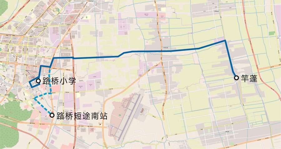 從“公交竿蓬站-路橋短途南站”變更為“公交竿蓬站-路橋小學”。